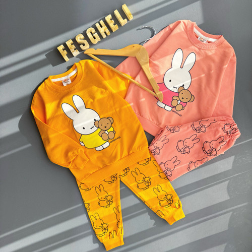 ست بلوز شلوار دخترانه دورس دو نخ راحتی و بیرونی طرح خرگوشی کد 203