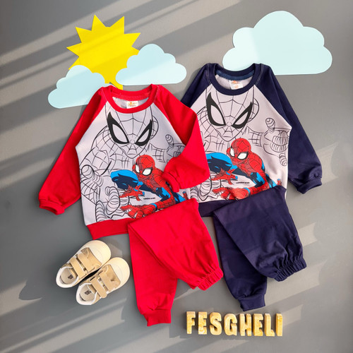 ست بلوز شلوار پسرانه دورس دو نخ راحتی و بیرونی طرح مرد عنکبوتی کد 204
