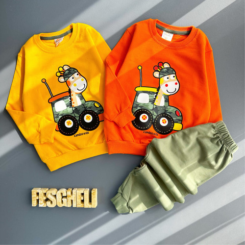 ست بلوز شلوار اسپرت بچگانه دورس دو نخ مناسب ۳ سال تا ۸ سال طرح زرافه کد 208