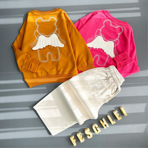 ست بلوز و شلوار بگ دخترانه ۴ تا ۱۰ سال طرح بال فرشته با دستبند ست کد ۲۳۶