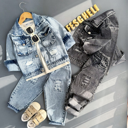 ست کت شلوار جین بچگانه اسپرت مناسب 3 تا 12 سال کد 265