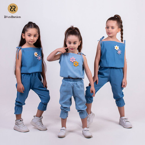 ست بلوز دورس و شلوار کتان دخترانه کد ۳۴۳