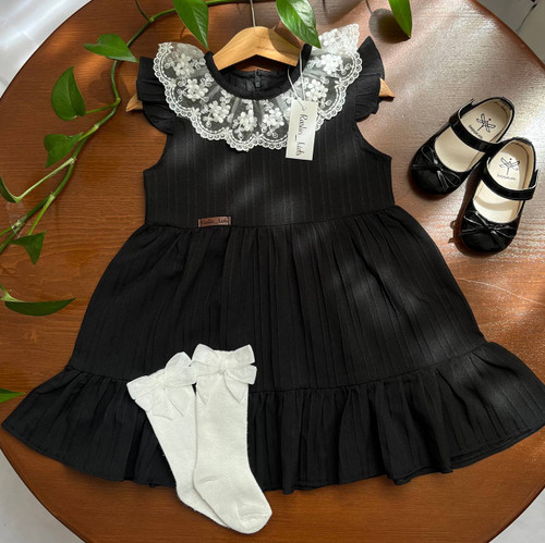 ناموجودپیراهن یقه دانتل مشکی دخترانه
