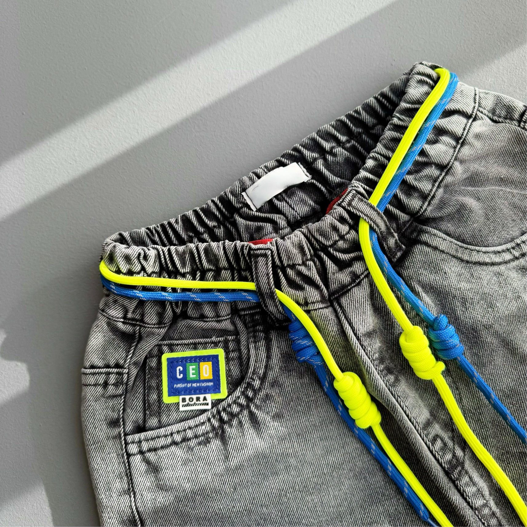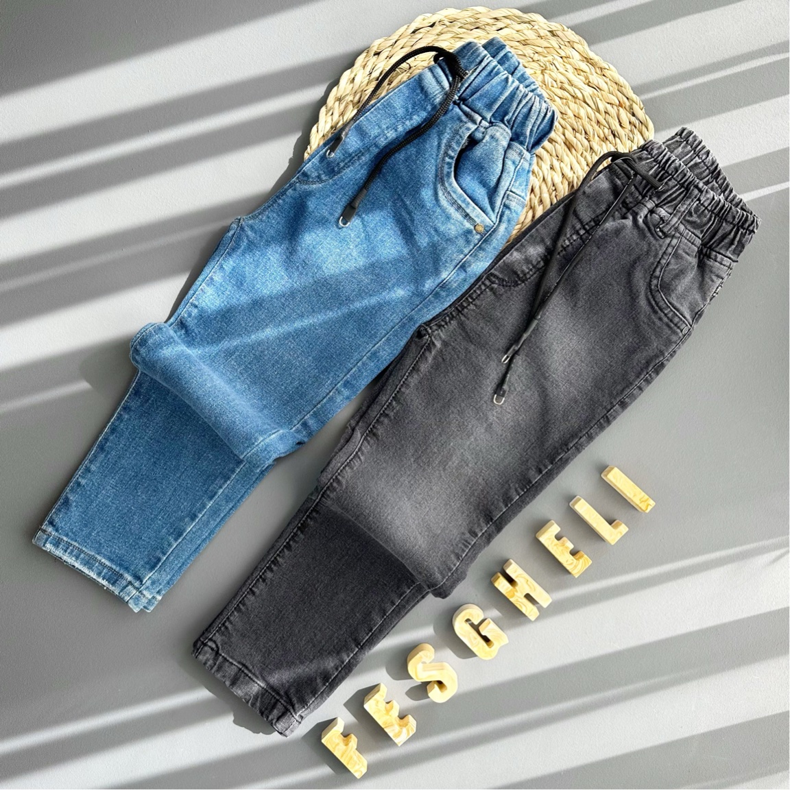 شلوارجین بچگانه اسپرت پارچه وارداتی رنگ ذغالی کپ مام طرح سی کد 202