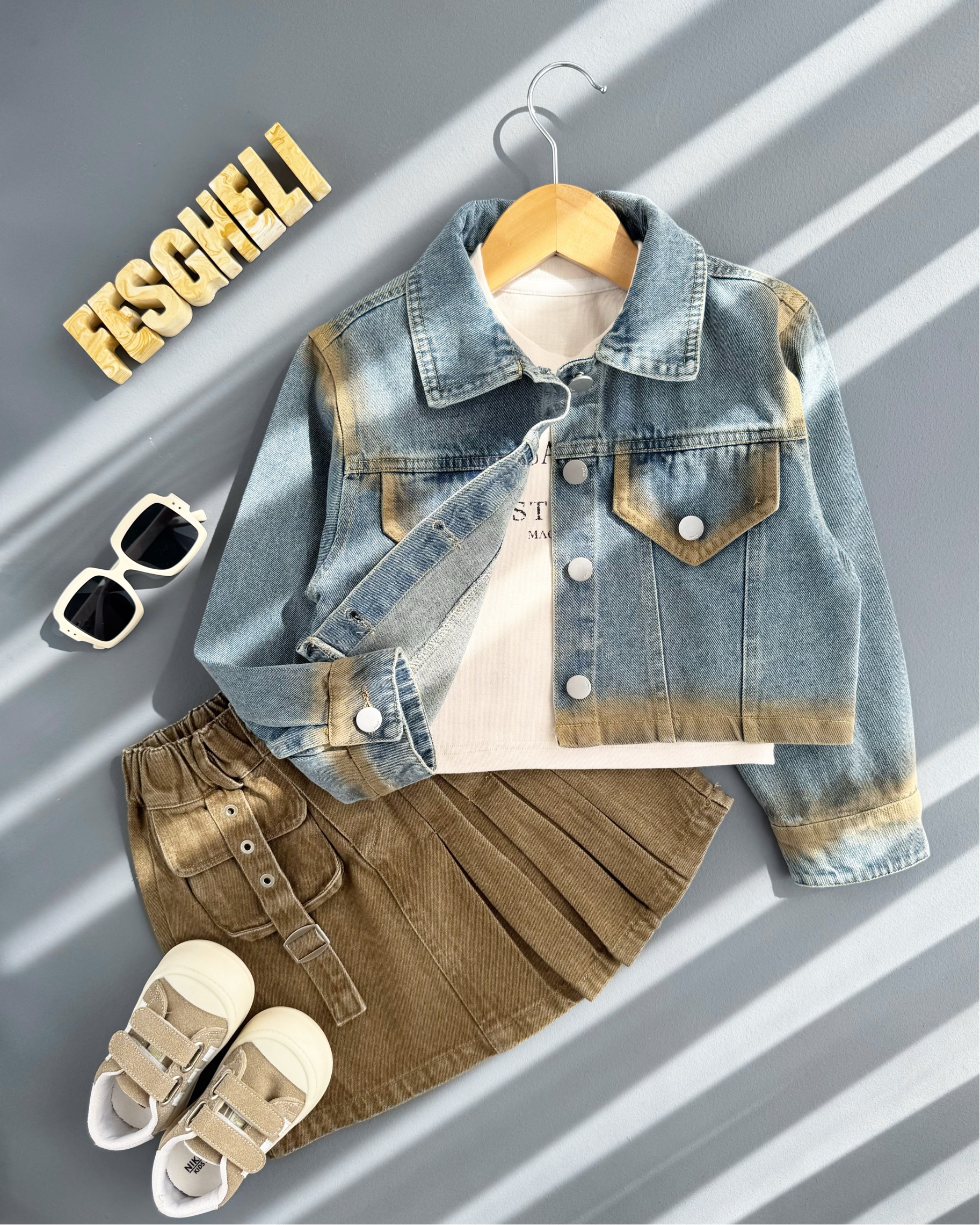 ناموجودست سه تیکه کت کراپ و دامن جین وارداتی بچگانه کد ۲۸۷