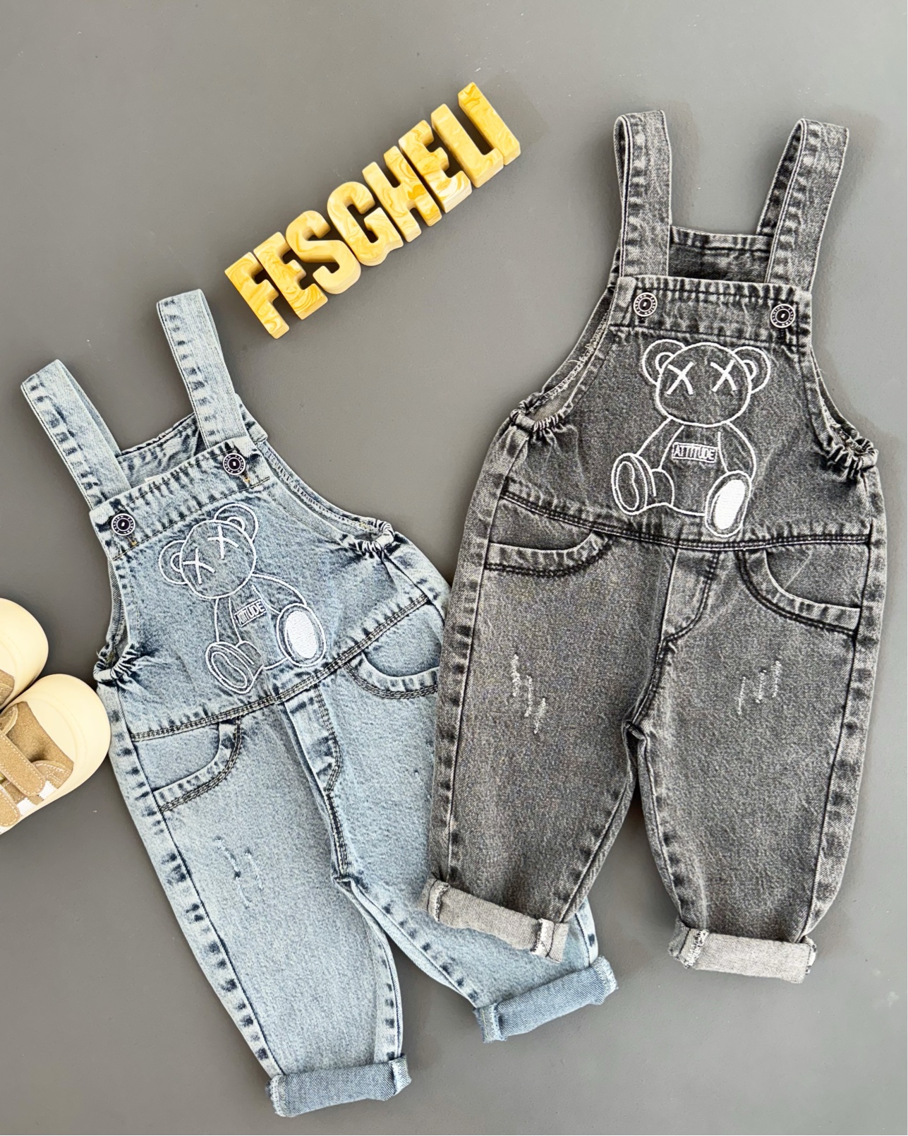 ناموجودبیلر شلوارپیشبندی جین طرح خرسی بچگانه کد 292