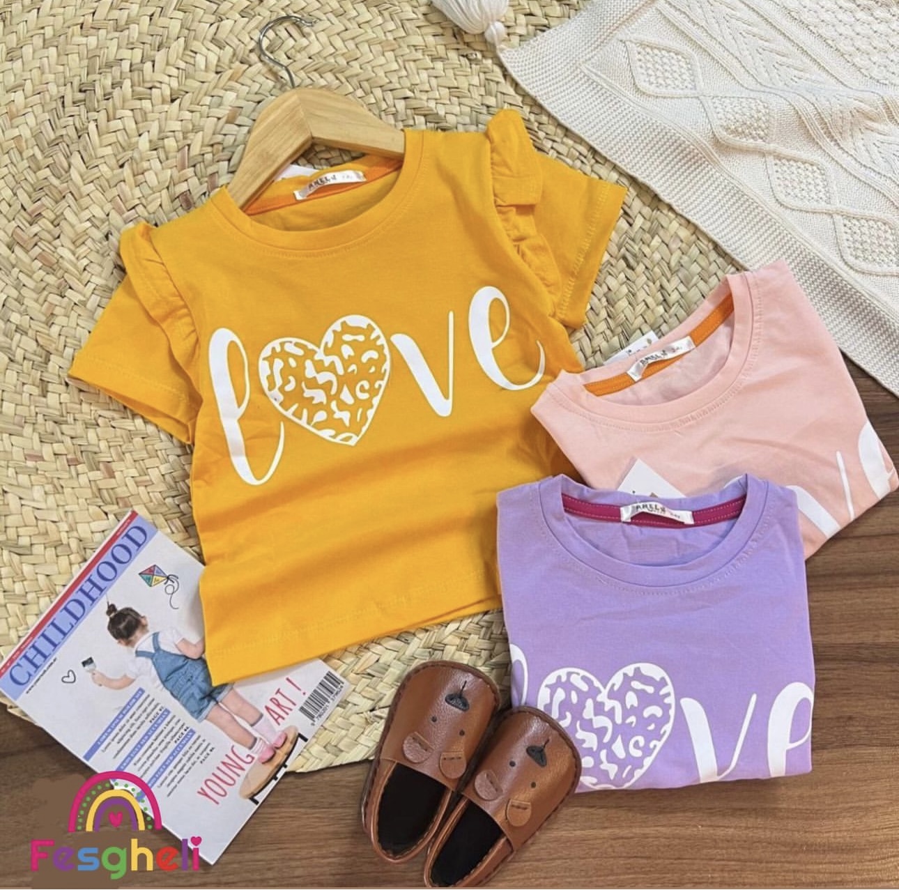 ست بلوز و شلوار بگ دخترانه ۴ تا ۱۰ سال طرح بال فرشته با دستبند ست کد ۲۳۶