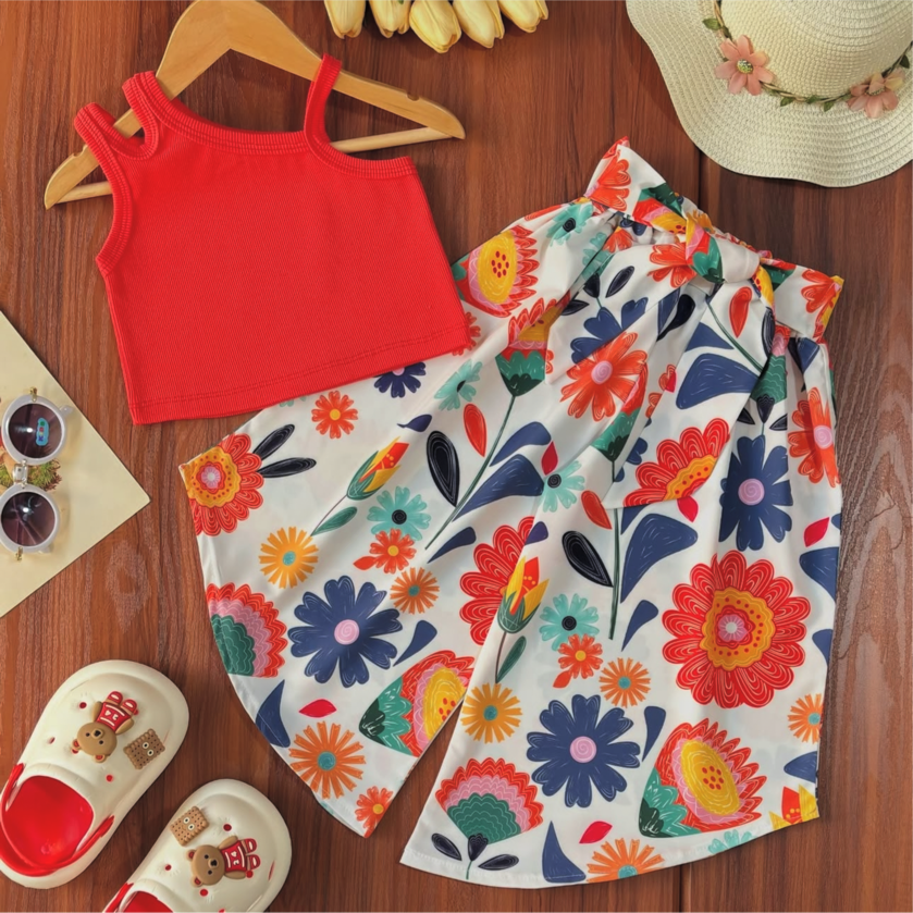 ست کراپ و شلوار بگ دخترانه مناسب 3 سال تا 14 سال کد 264