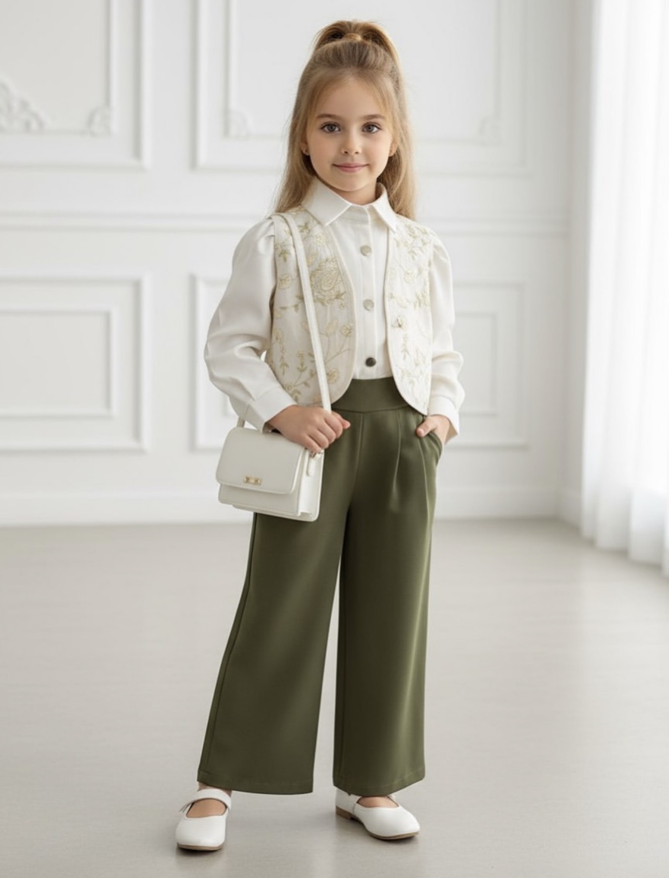 ناموجودست سه تیکه مجلسی شومیز وست و شلوار بگ دخترانه کد ۳۳۰