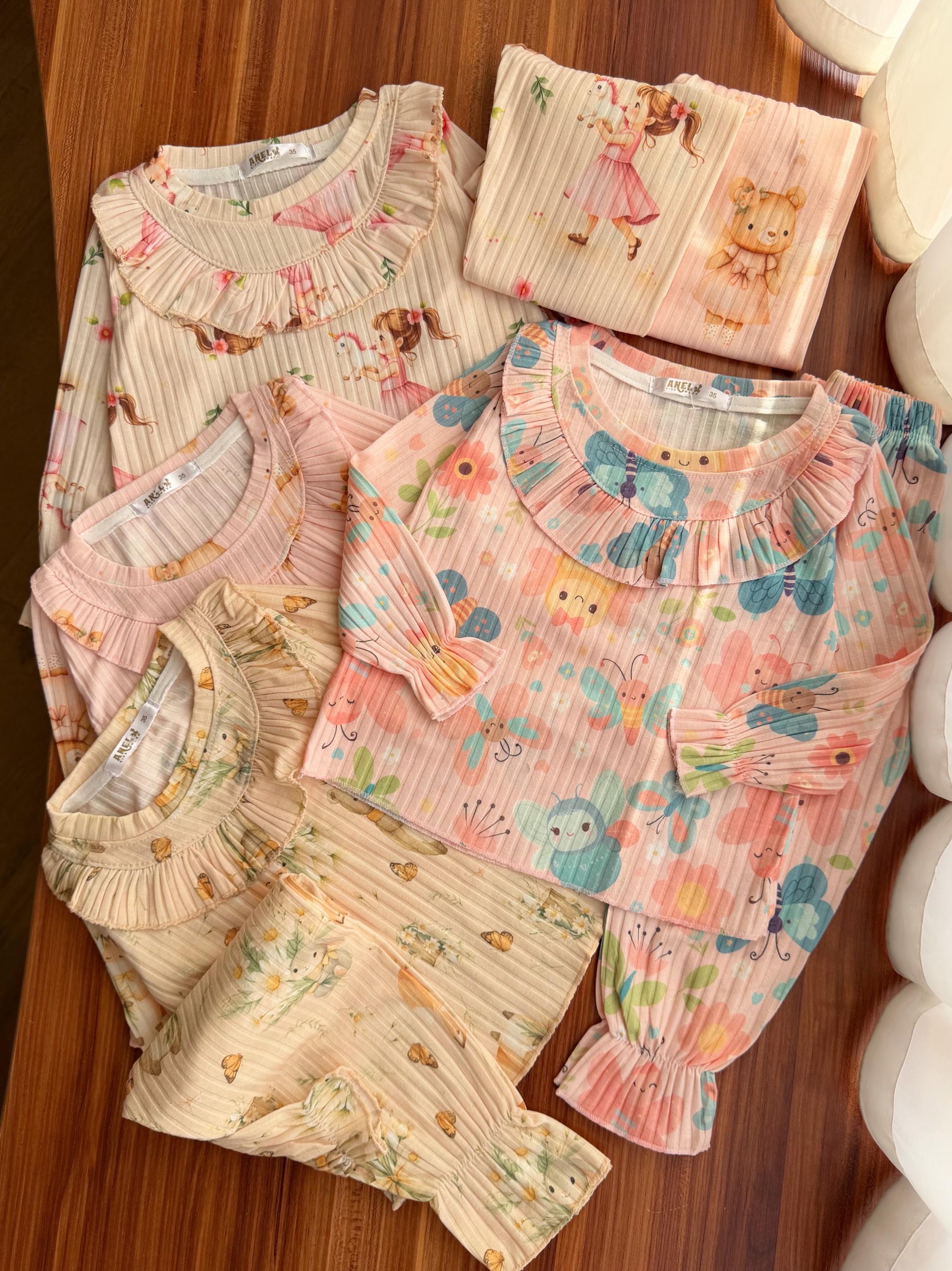 ناموجودست بلوز شلوار دخترانه سایز 40 و 45 بچگانه جنس دورس دو نخ کد 256