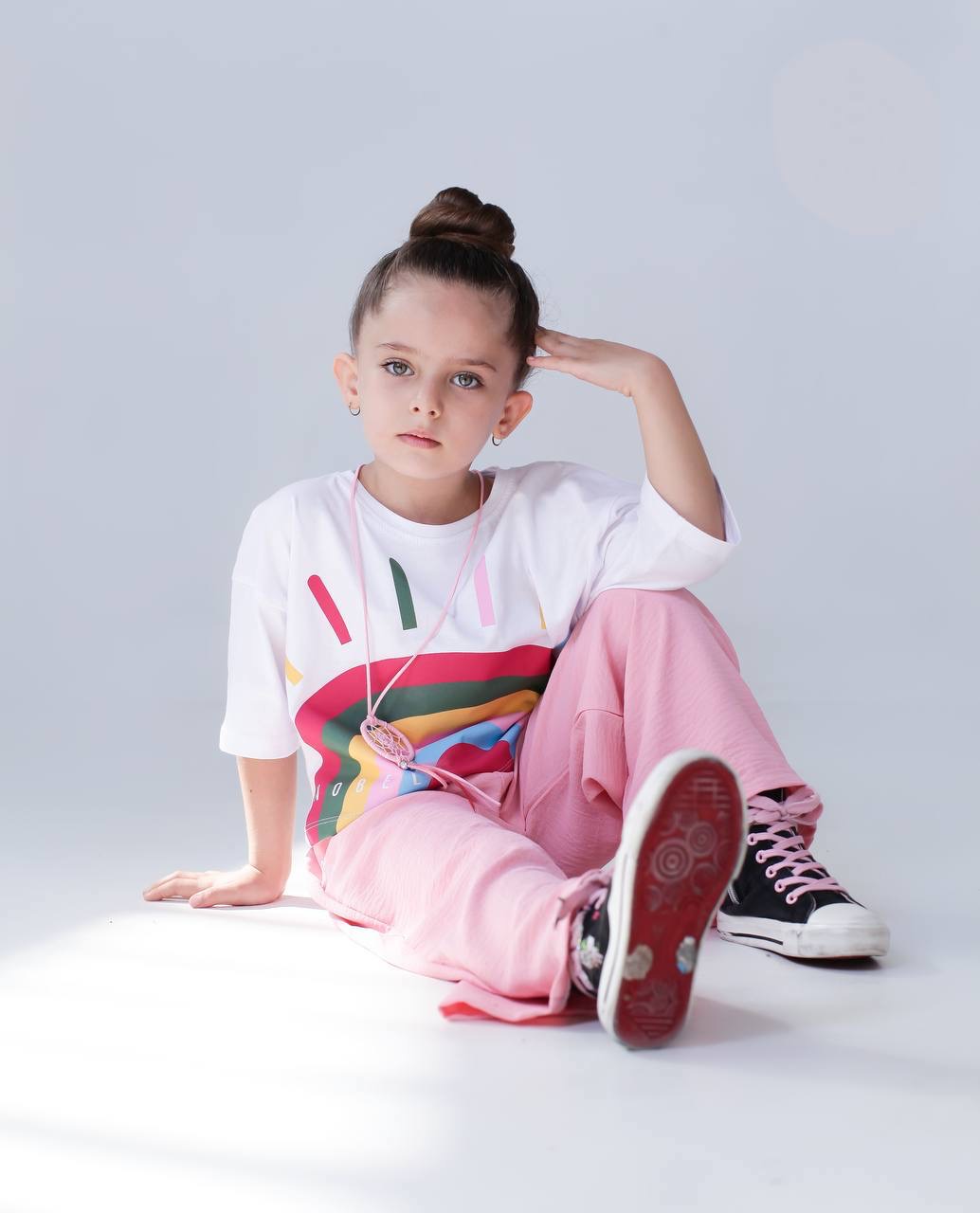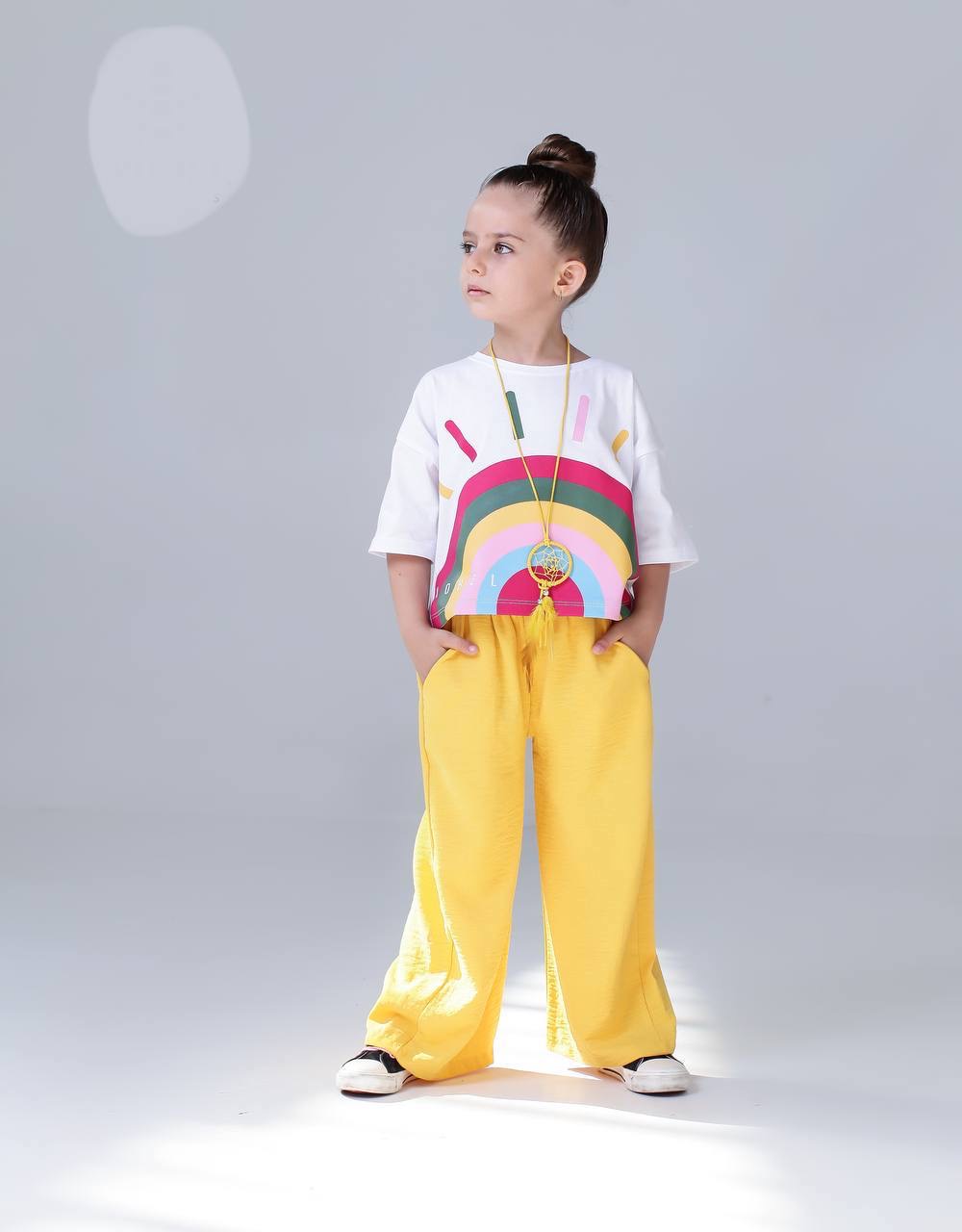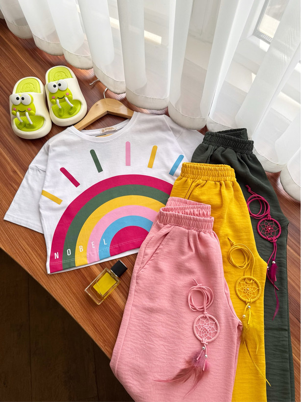 ست کراپ و شلوار بگ دخترانه با گردنبند کد ۳۲۱