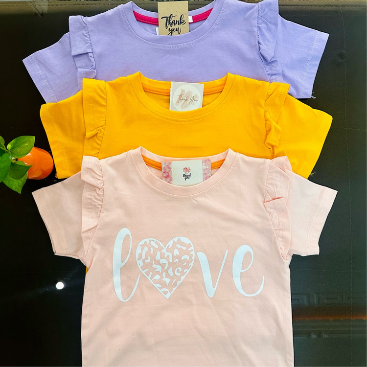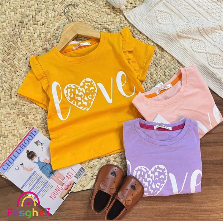 تیشرت دخترانه آستین چیندار نخ پنبه