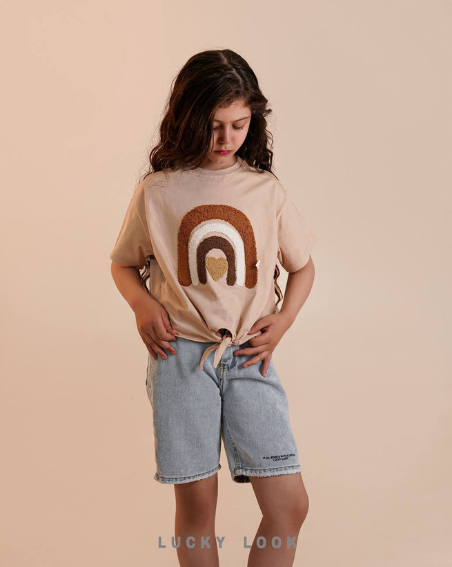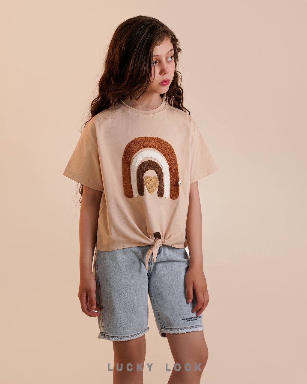 کراپ تک گره ای دخترانه شنل دوری و نخ پنبه رنگین کمان از برند لاکی لوک💎