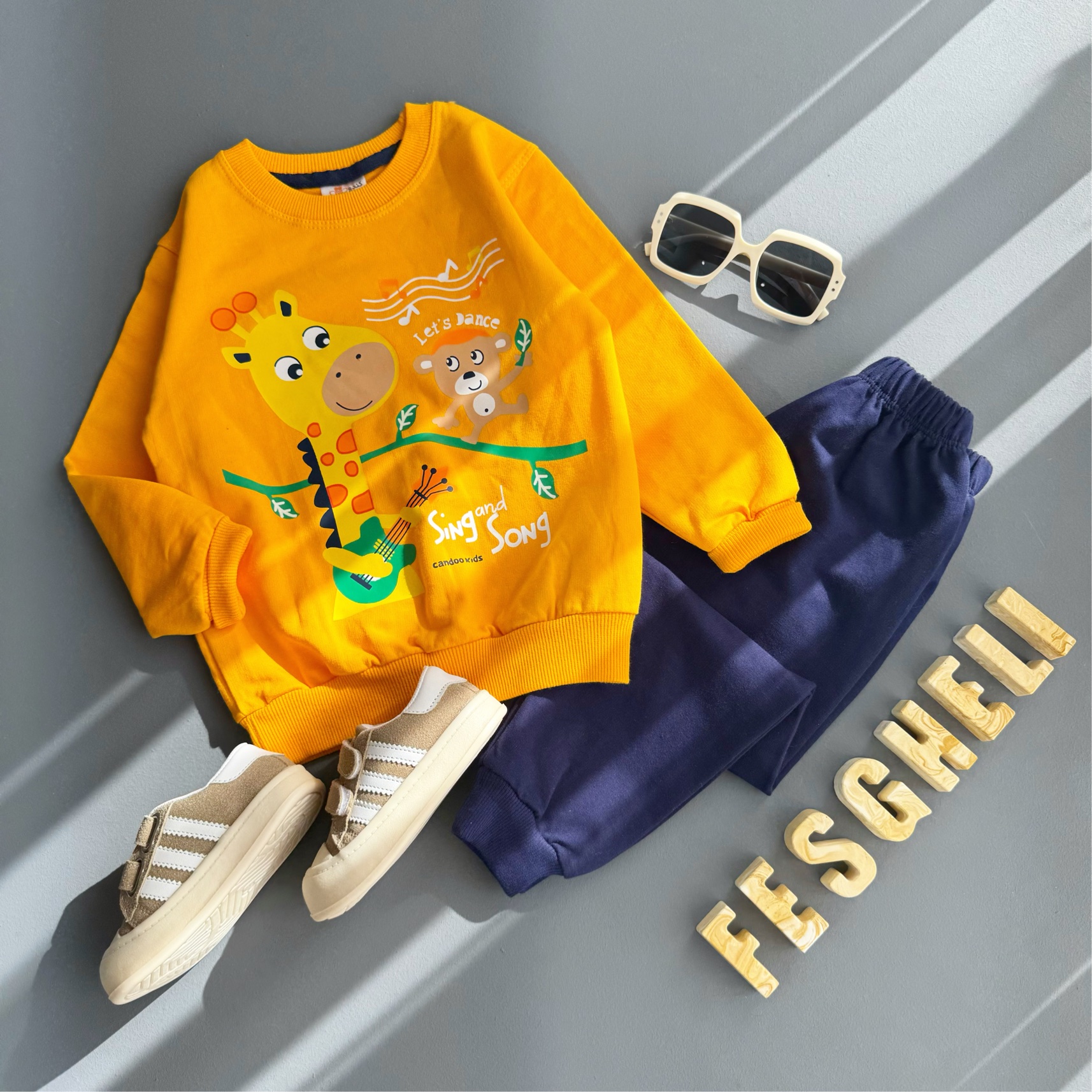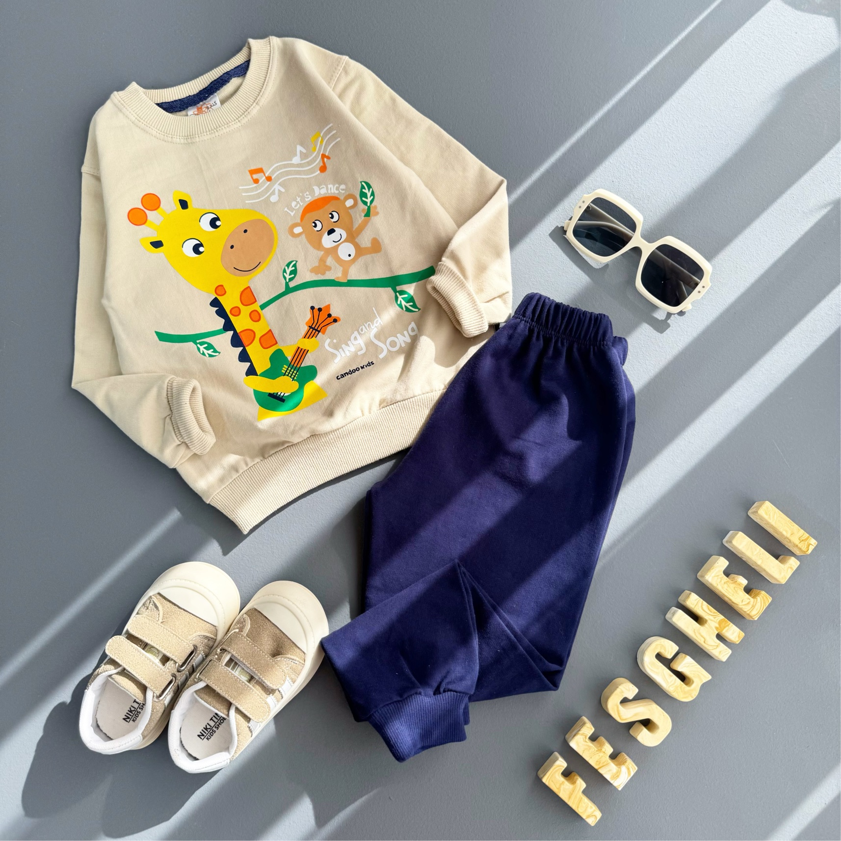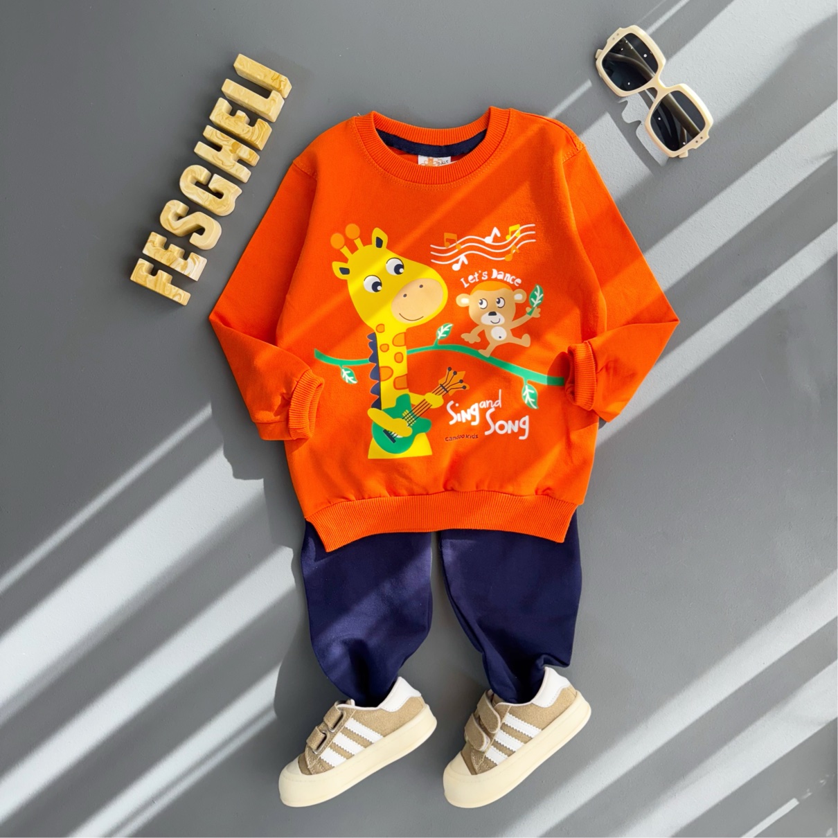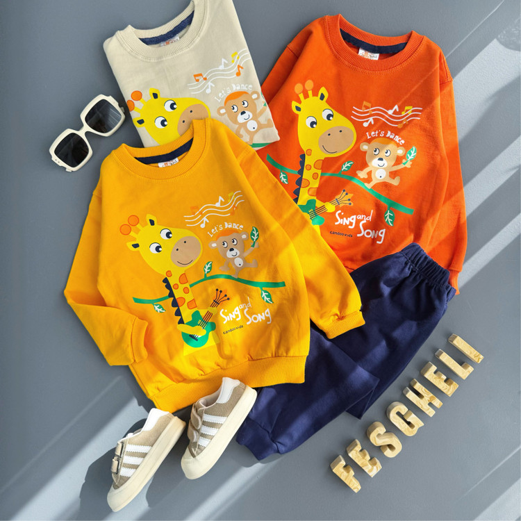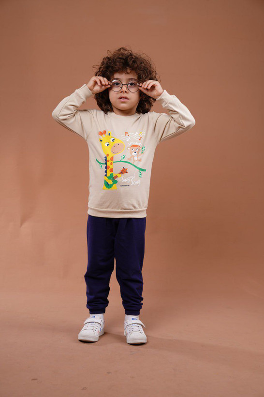 ست بلوز شلوار اسپرت بچگانه دورس دو نخ مناسب ۳ سال تا ۸ سال طرح زرافه کد 208