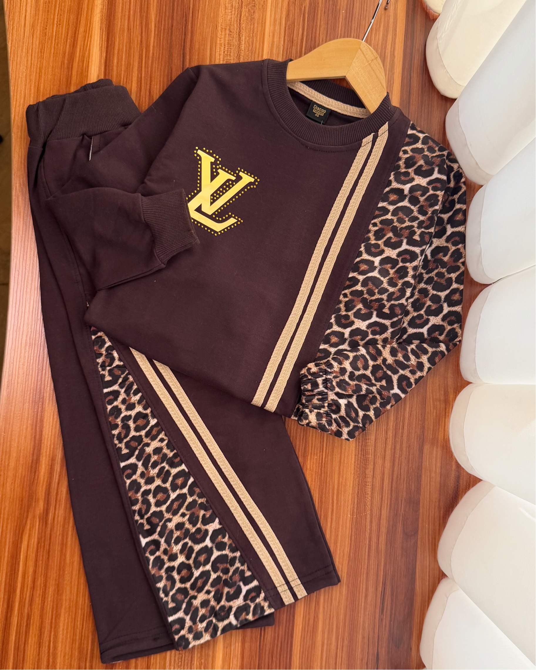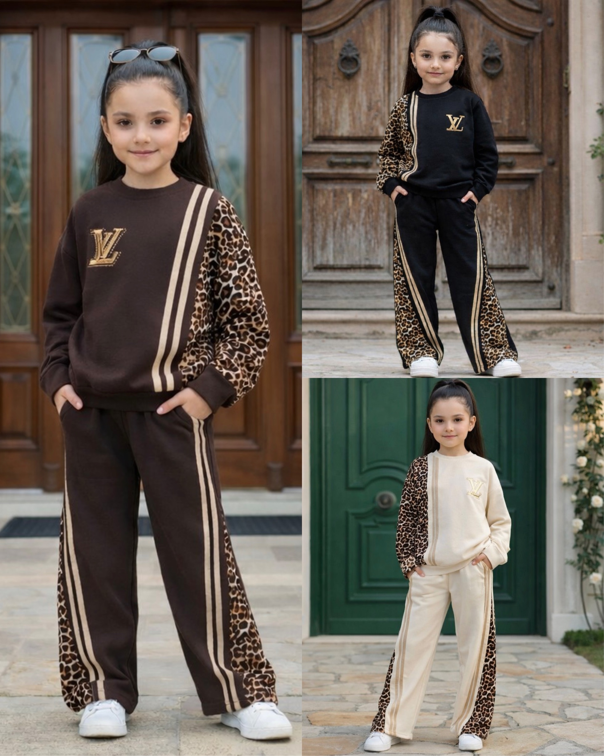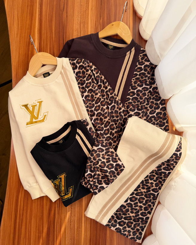 ست بلوز شلوار پلنگی دخترانه طرح ال وی کد ۳۷۶
