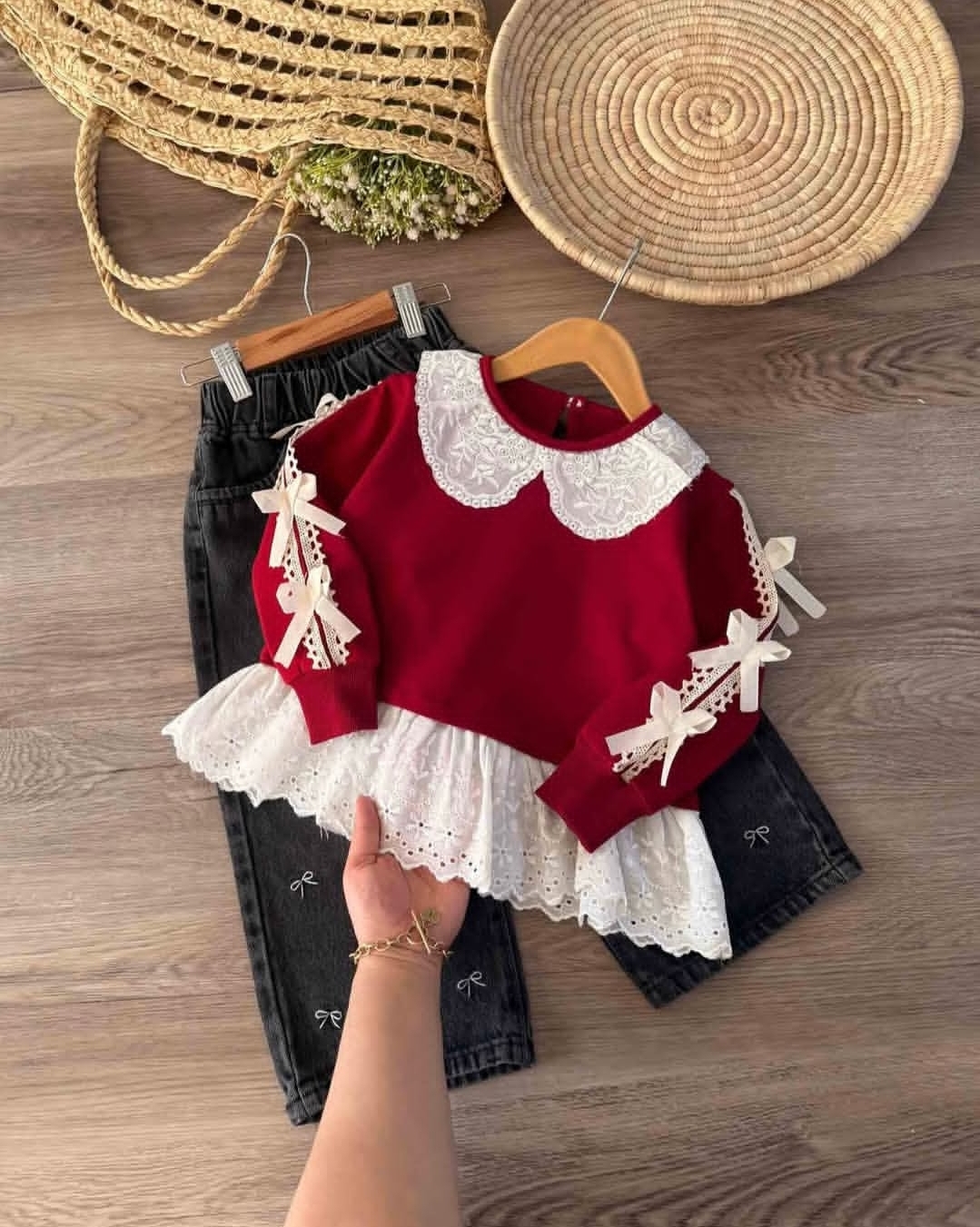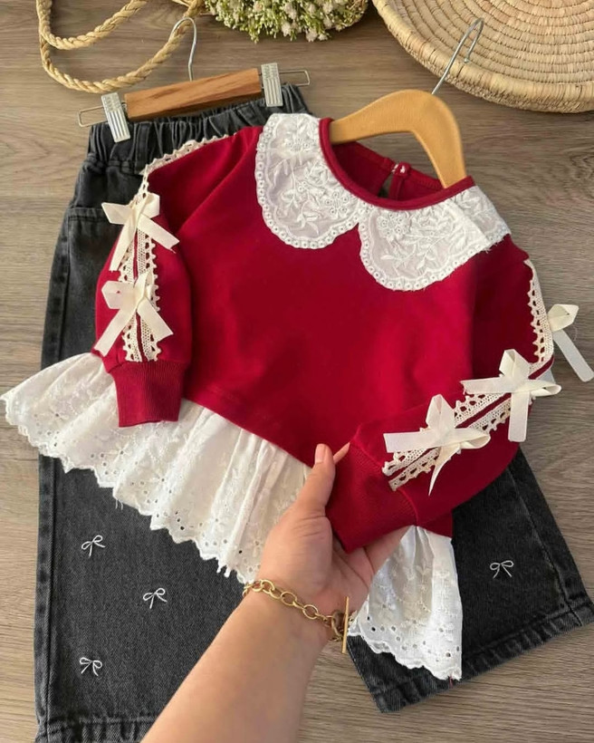 🎀پاپیون روی استین دوخت شده و قابل جدا شدن نیس
