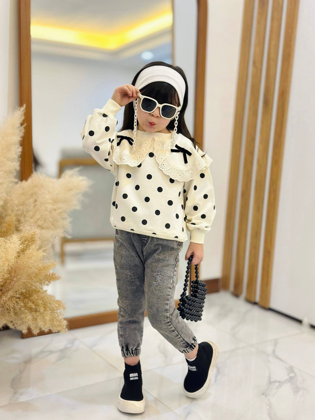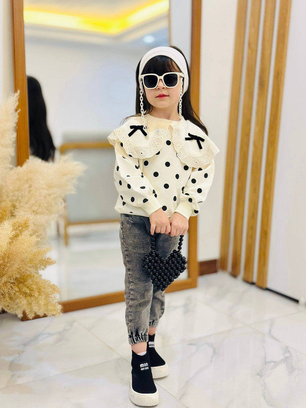 سایز ۶ 👈 قد بلوز ۶۵ پهنا ۵۰ قد آستین از گوشه یقه ۶۵