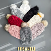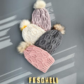 کلاه بافت بچگانه تا نوجوان داخل خز تخفیفی طرح پوم پومی کد 213